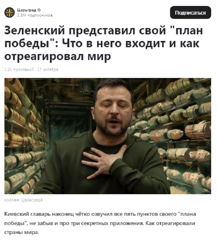 Зеленский представил свой "план победы": Что в него входит и как отреагировал мир Фото: Царьград