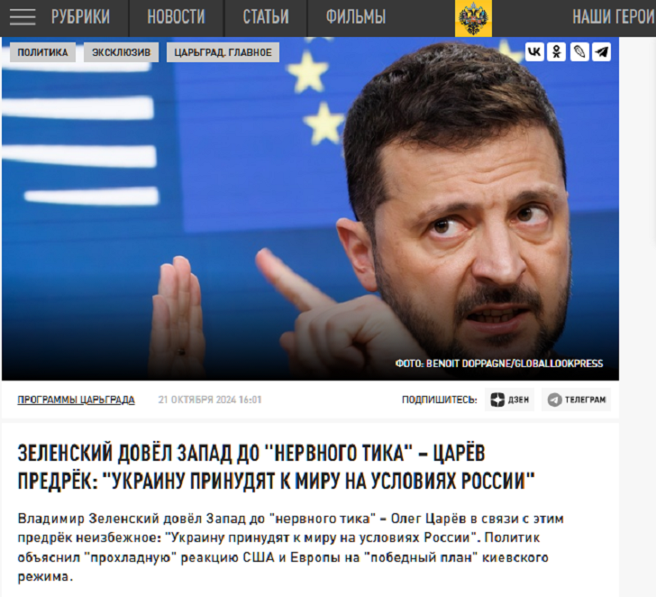 Зеленский довёл Запад до "нервного тика" – Царёв предрёк: "Украину принудят к миру на условиях России" Фото: Царьград