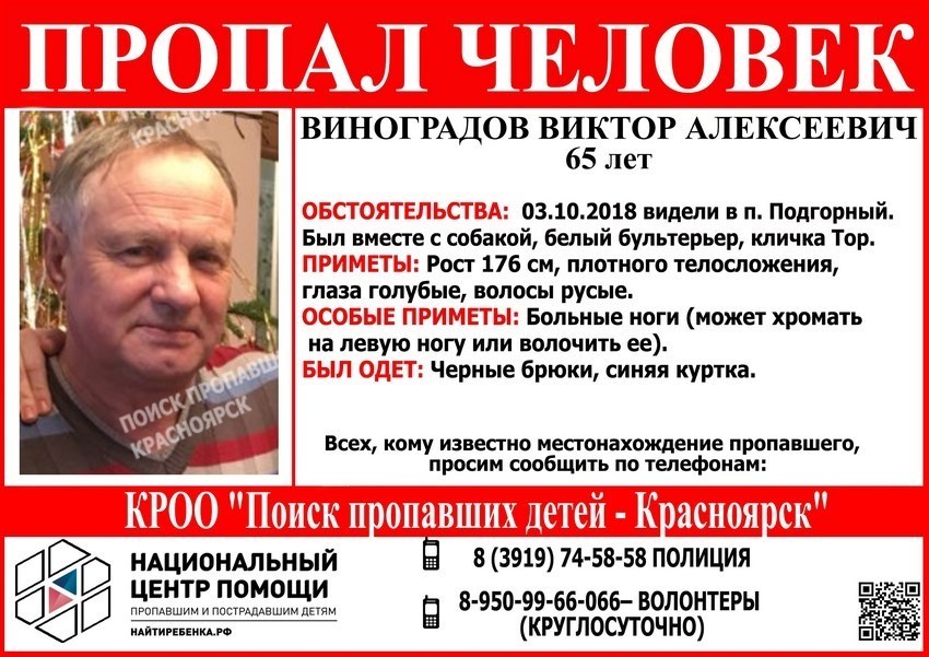 Самый яркий пример – 65-летний на тот момент житель Подгорного Виктор Виноградов. Примечательно, что пропал он примерно в то же время года, что и Усольцевы.