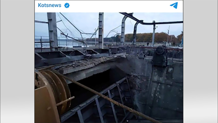 Повреждённая дамба. Скриншот с ТГ-канала Александра Коца