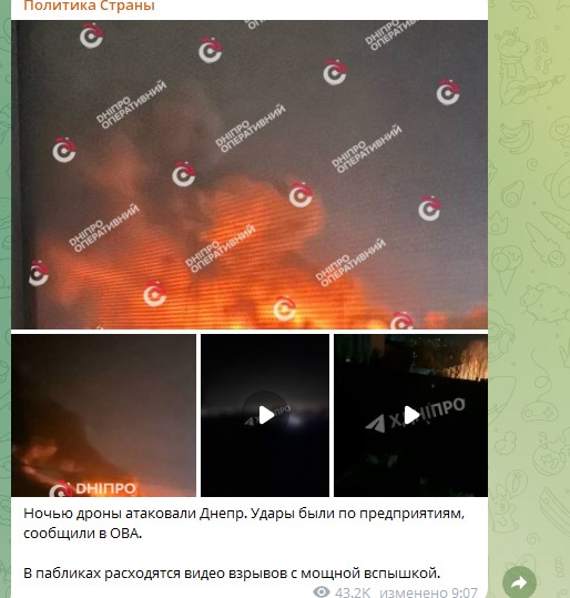 Интересным продолжением темы Днепропетровской области стала ночная атака с 14 на 15 ноября. Ранее стало известно о том, что в ночь на 15 ноября Вооружённые силы России нанесли масштабный удар "Геранями" по базам ВСУ и промышленным объектам в Днепропетровске и области. По словам очевидцев, за ночь были зафиксированы десятки прилётов. Сирены выли в городе и области не менее восьми часов, а к утру на поражённых объектах пылали пожары.