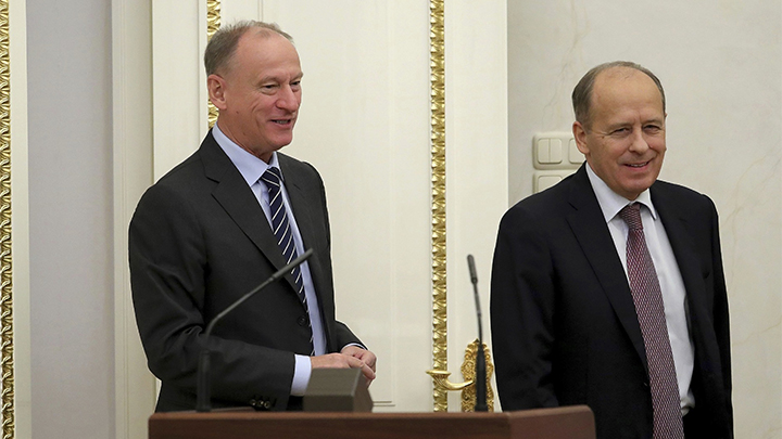 Николай Патрушев делает всё, чтобы впоследствии его сын Дмитрий Николаевич смог стать опорой группы. Фото: Mikhail Metzel/Kremlin Pool/Global Look Press