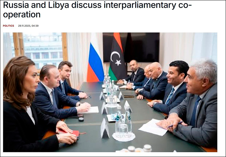 А в конце ноября Москву посетила группа депутатов ливийского парламента (из палаты представителей) и провела переговоры с нашими чиновниками, включая заместителя председателя Госдумы.