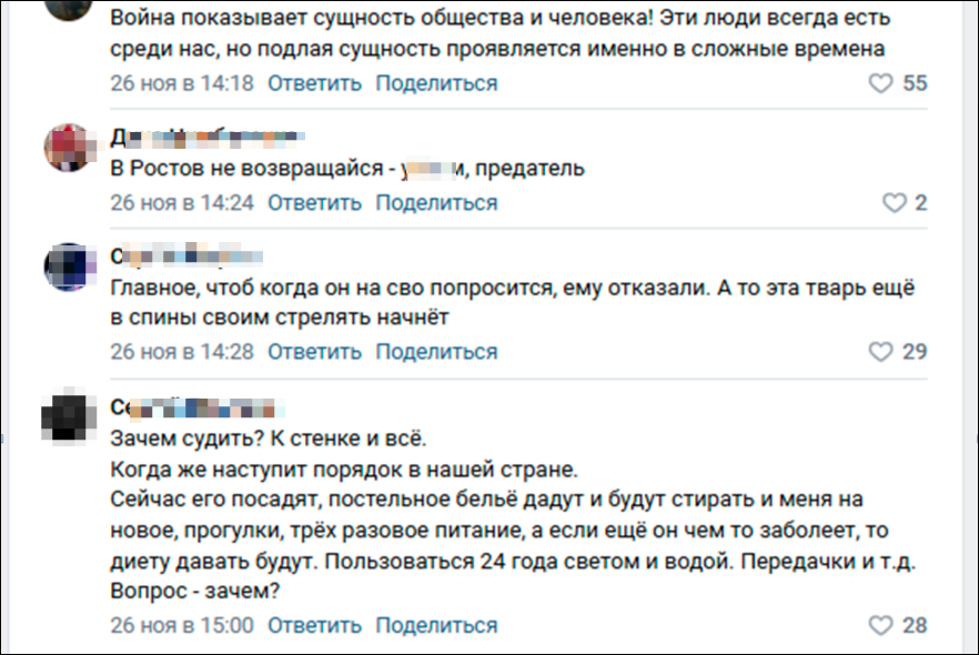 Земляки предателя – Верьянов* родом из Ростова-на-Дону – считают, что суд дал ему слишком мягкое наказание. Скриншот комментариев с ВК-сообщества "Ростов Главный. Новости Ростова-на-Дону"