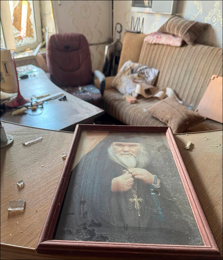 Изображение святого старца не пострадало даже при самой жестокой бомбёжке // Фото из ТГ-канала "Голованов"