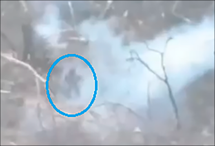 Наш боец в клубах дыма после того, как сбил вражеский дрон палкой и остался жив // Скриншот видеокадра из соцсетей