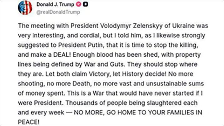 — так Дональд Трамп подвёл итог переговоров с Зеленским в своём посте на Truth Social.