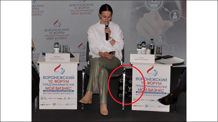 Брендовая сумка за полмиллиона нескромно выглядывала из-под стола // Фото: кадр с форума предпринимателей