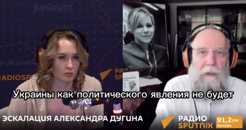 Дугин обратил внимание, что Украина окончательно превратилась в проект "анти-Россия" и теперь Москва и Киев не могут больше сосуществовать вместе. Если останется Россия, не будет Украины (в политическом плане), и наоборот. Однако философ подчеркнул, что без государства Украина мир вполне может обойтись, а вот без государства Россия - нет.