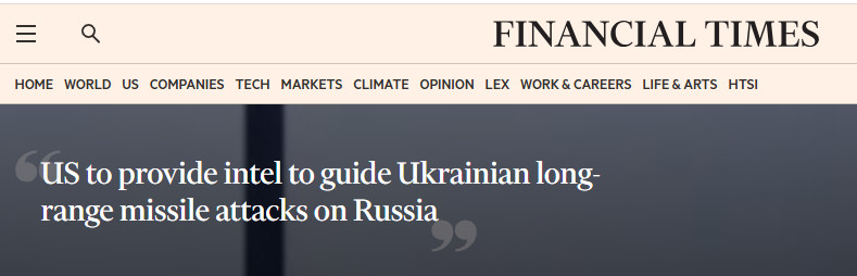 При этом в игру всё активнее включаются США. По данным FT и The Wall Street Journal, Вашингтон готовится предоставить Киеву разведданные для наведения ударов по русским системам ПВО и энергетической инфраструктуре. По информации издания, решение в пользу передачи информации о маршрутах и целях для дальнобойных ракет было принято ещё до поста Дональда Трампа в соцсети Truth в сентябре. Тогда он заявил, что Украина "в состоянии вернуть всю территорию в её первоначальных границах".