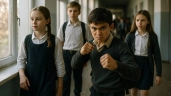 - За что? - спрашивает школьник, получивший несколько ударов. К этому моменту у него уже разбита губа.