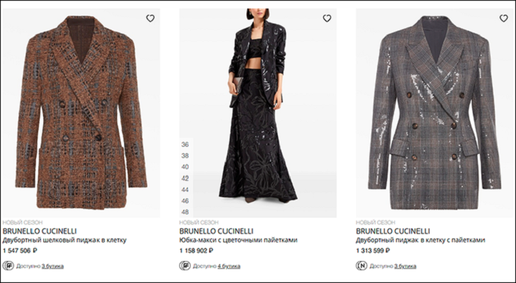 Притом что Европа ограничила продажу в Россию люкса дороже €300, а бренды свернули свои прямые магазины, спрос продолжает удовлетворяться через посредников и параллельный импорт. В Италии, например, опубликовали отчёт, где говорилось о том, что московские магазины продолжают предлагать вещи Cucinelli из свежих коллекций сезона 2024/2025.