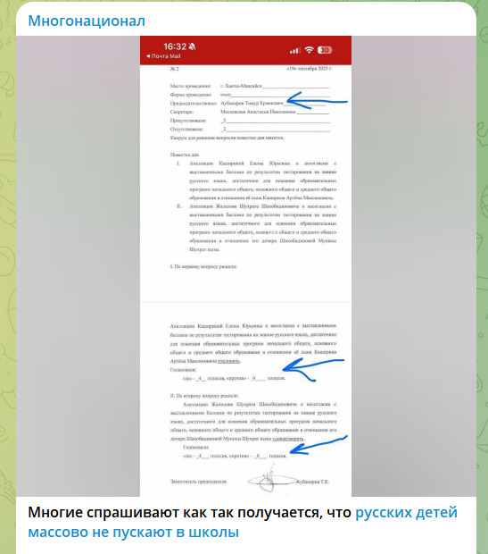 Председатель комиссии, заместитель директора департамента образования ХМАО Тимур Ермекович Аубакиров, подписал решение, которое в родительских чатах уже окрестили "откровенно русофобским".