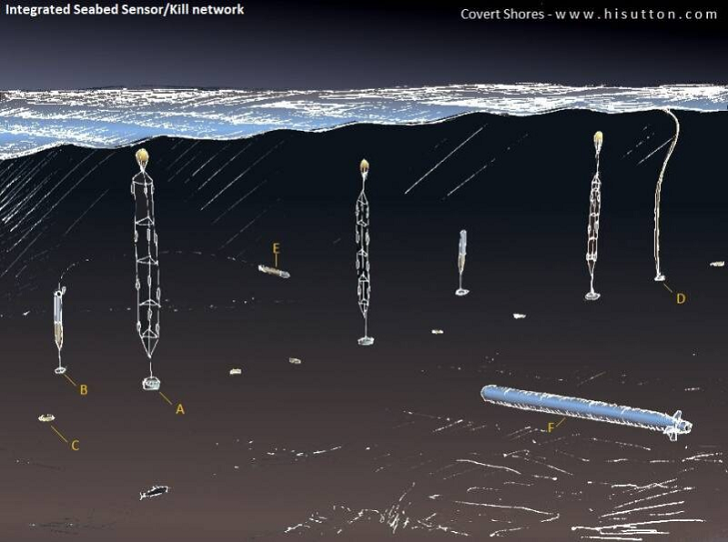 Вариант адаптации SOSUS под борьбу с "Посейдонами". Имеющиеся у американцев торпеды медленнее русского дрона, поэтому должны атаковать его на встречных курсах. Источник: hisutton.com