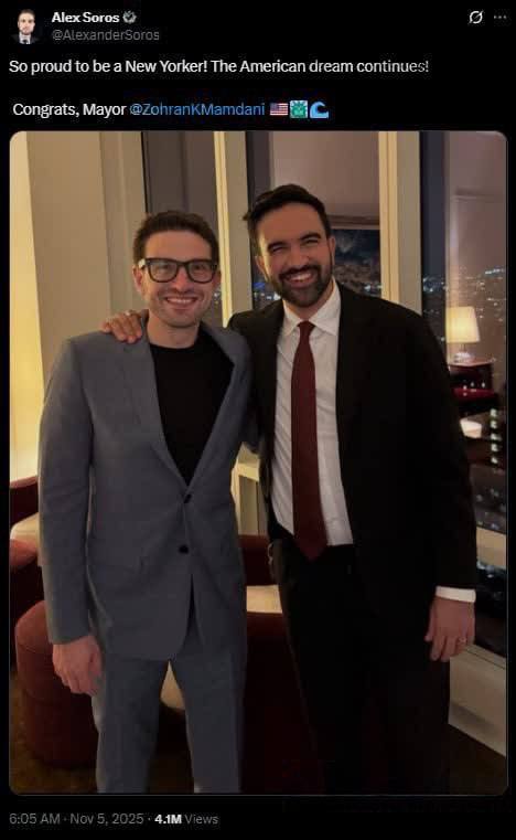 На выборах мэра Нью-Йорка победил 34-летний социалист Мамдани. Его поздравил с победой сын Джорджа Сороса. В Белом доме пока не понимают, во что "вляпались".