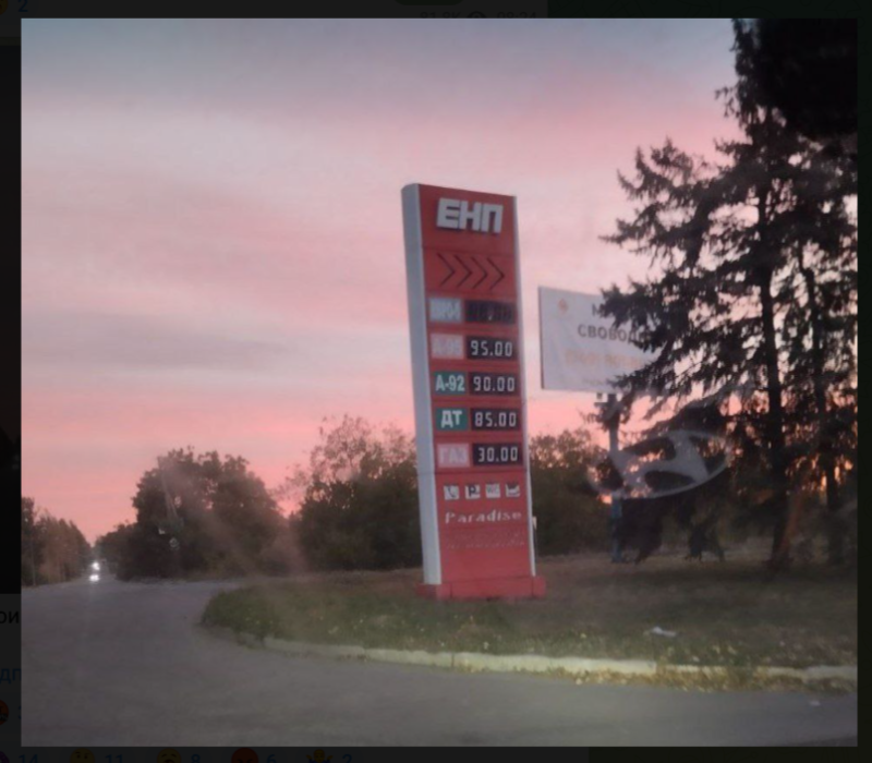 Цена на бензин в Енакиево, ДНР. Скриншот: телеграм-канал "Типичный Донецк"