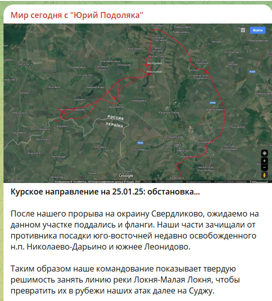Таким образом, наше командование показывает твёрдую решимость занять линию реки Локня - Малая Локня, чтобы превратить их в рубежи наших атак далее на Суджу, полагает эксперт: