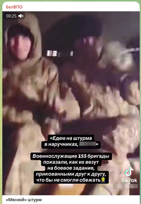 Видимо, чтобы этого не произошло впредь, боевиков теперь доставляют на ЛБС в наручниках - в сеть действительно попали кадры, как солдаты из этого подразделения едут в машине, прикованные друг к другу "железными путами".