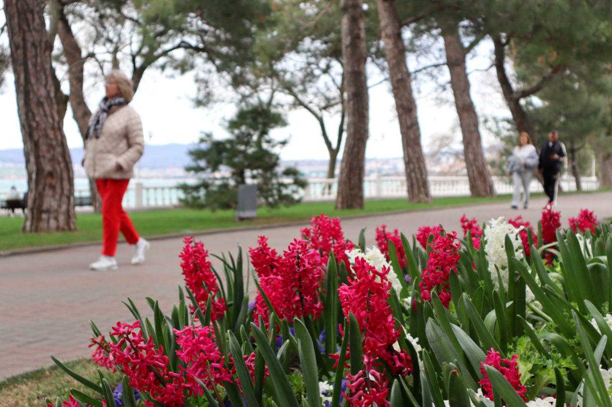Гиацинты, тюльпаны, виола всех оттенков уже стали настоящим украшением клумб Геленджика. Прогуливаясь по набережной, невольно заглядываешься на это разноцветье. Оно рукотворное - в городе уделяют особое внимание ландшафтному дизайну.