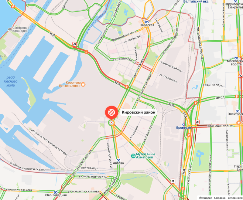 Утром на ЗСД произошло массовое ДТП у съезда на набережную Екатерингофки, изза чего движение оказалось практически полностью парализовано.