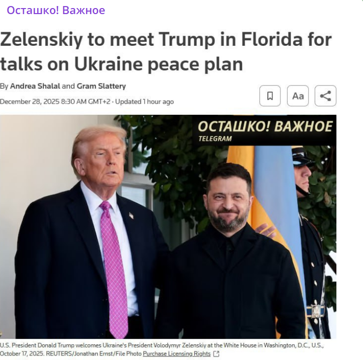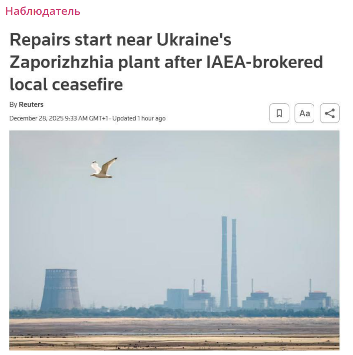 Напомним, что судьба Запорожской АЭС - это один из важных пунктов мирного плана, который в настоящее время США согласовывают с Украиной. В изначальном мирном плане, предлагаемом американской стороной, предлагалось, чтобы ЗАЭС распределяла энергию поровну - половину России, половину - Украине. А США при этом должны были играть роль менеджера, управляющего станцией.