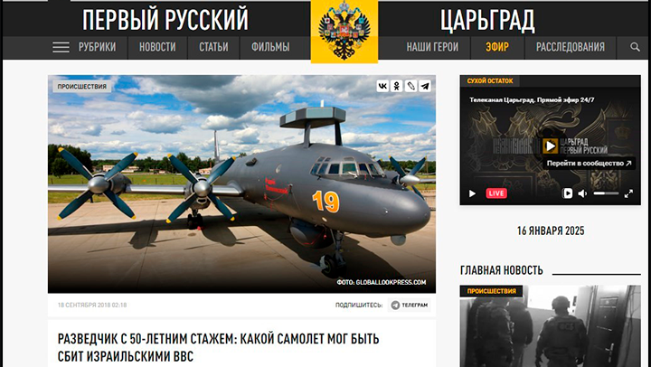 Ил-20 - уникальный самолёт, потерянный в результате провокации НАТО. Скриншот страницы сайта Царьграда