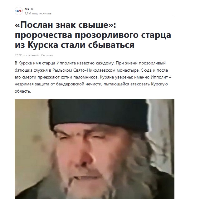 "Московский комсомолец" рассказал истории жителей Курской области во время нападения боевиков ВСУ. По словам верующих, когда украинские боевики начали атаку на Курскую область, они сразу знали, что до Рыльска они не дойдут.