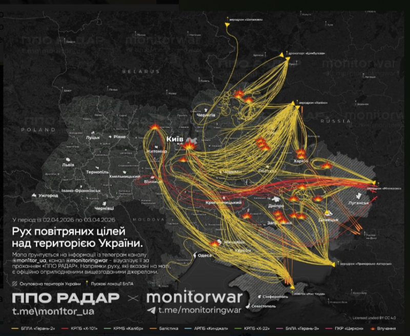 Но вернёмся к налёту, который был совершён со 2 на 3 апреля. Судя по видео очевидцев, сотни наших дронов безжалостно испепелили ВСУ. Воздушные силы Украины подтверждают, что русская армия нанесла удары по "объектам критической инфраструктуры" с применением "ударных беспилотных аппаратов, а также ракет воздушного и наземного базирования". Были зафиксированы 579 "средств воздушного нападения":