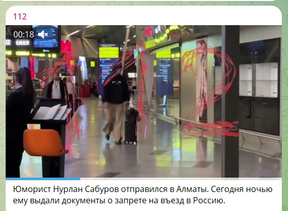 Комик, стендапер Нурлан Сабуров отправлен из московского аэропорта, где провёл несколько неприятных часов на кушетке в зале для задержанных в Алматы. Всё, улетел.